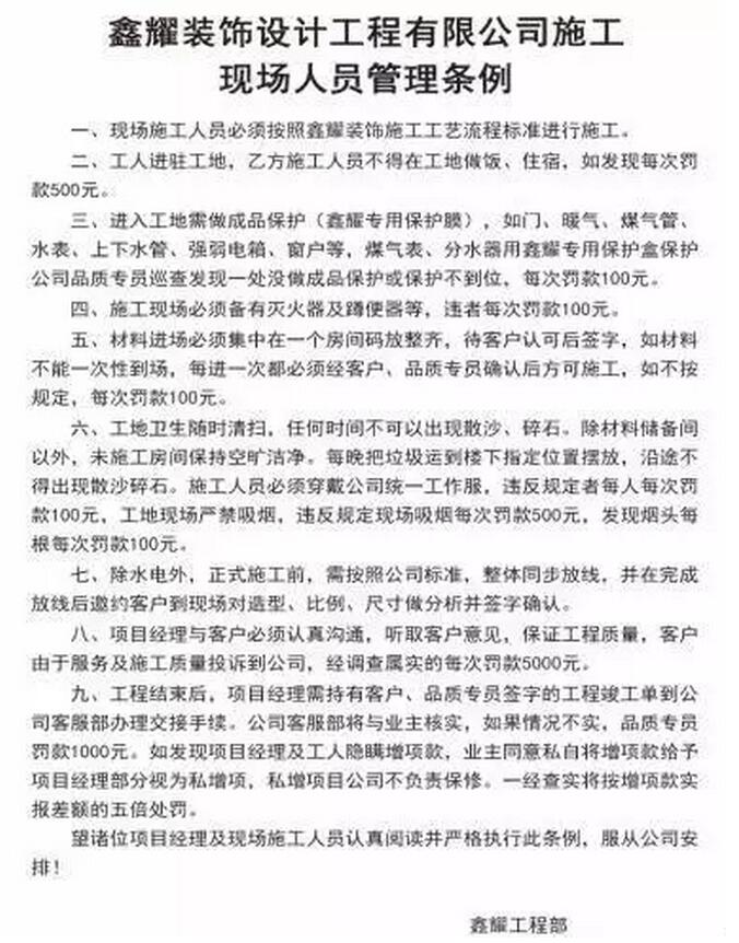 鑫耀的每位工人師傅都以秉承著“竭盡全力” “把握細節” “做到最好”來為每位業主提供最好的家裝體驗!